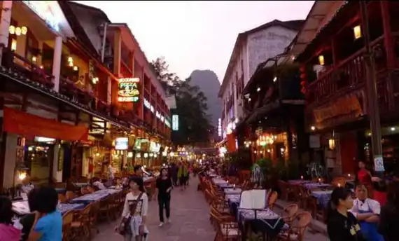 早餐后乘船游览桂林【市区水上游】(70分钟左右,码头:龙船坪-叠彩山),临风而立,凭栏远望,满眼风光如画——桂林城徽{象鼻山},神奇传说{伏波山}、江山汇景处{叠彩山}、斗鸡山、穿山、塔山、七星山、老人山等。乘车赴阳朔(68KM, 车程80分钟,全程二级公路),车览阳朔著名景区十里画廊及电影《上甘岭》的外景拍摄地【遇龙河风光】,听导游述说骆驼过江等古老传说;远观月亮山的阴晴圆缺;自由漫步洋人街(50分钟),感受中国民族元素与西方艺术相碰撞的气息氛围。参观吉美咖啡(50分钟)。
