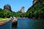 早上集合出团,乘景区环保车赴百龙电梯上山(单程72元/人,费用未含),后游览【袁家界核心景区】《阿凡达》外景拍摄地——哈利路亚山(约1.5小时),探寻影视阿凡达中群山漂浮、星罗棋布的玄幻莫测世界;参观云雾飘绕、峰峦叠嶂、气势磅礴的迷魂台,及天下第一桥等空中绝景。以不同的角度远眺张家界最大的凌空观景台—黄石寨。后百龙电梯下山(单程72元/人,费用未含),欣赏世界最美的有天然氧吧之称的【金鞭溪】(约1小时)杉林幽静,穿行在峰峦幽谷云间,溪水明净,人沿清溪行,胜似画中游;。游览【十里画廊景区】(游览时间约1小时)峡谷两岸林木葱茏、野花飘香,奇峰异石、千姿百态像一幅巨大的山水画卷。游览享有“世界溶洞全能冠军”之称的国家AAAAA【黄龙洞景区】(门票已含,游览时间约2小时):洞中灯火阑珊、石笋林立,犹如一株株古木错节盘根、洞中有洞、洞中有河、无奇不有,真乃名副其实的“地下魔宫”,洞中还有投保一亿元的石笋定海神针、响水河、龙王聚会厅、天仙水、天柱街等著名景点。 夜间欣赏大型民族风情演艺——烟雨张家界(赠送价值228元/人普座票,无优免无退费,游览时间约1小时40分钟)。