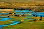 巴音布鲁克草原,蒙古语意为泉源丰富,位于中天山南麓,海拔约2500米,面积22000平方公里,是我国第二大草原,仅次于内蒙古额尔多斯草原。这里地势平坦,水草丰盛,是典型的禾草草甸草原。
