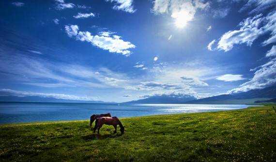 赛里木湖位于新疆博乐市境内天山西段的高山盆地中,蒙语称赛里木卓尔,意为山脊梁上的湖。赛里木湖风景区是以塞里木湖为中心,包括湖周围风光旖旎的山地森林和湖滨草原,组成一个湖泊型风景名胜区。