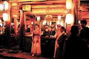 除了桥,古城最有特色的要数四方街附近的酒吧了。四方街差不多在古城的中心位置,原来本是来往客商交易皮具的地方,而今它的用途已经发生了巨大变化。由四方街向两边走都是一个接一个的酒吧,每到夜色降临时,这里都是人声鼎沸的狂欢之所。我们来到这里的时候正好是晚上10点钟,狂欢最热烈的时候,街道上,酒吧中到处都是对歌的人们,很多少数民族的姑娘用嘹亮地歌声将气氛送向高潮,而更多像我们这样的游客就会用流行歌曲回应她们的盛情。